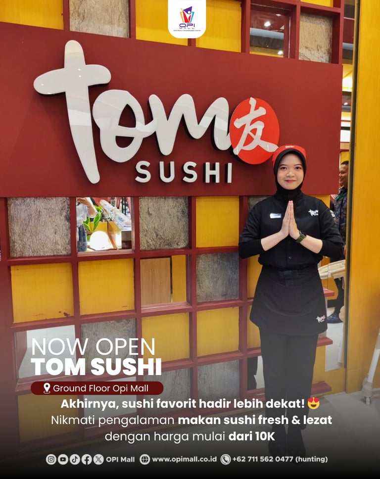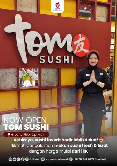 Kini sushi favorit kita sudah lebih dekat, Yuk cobain Tom Sushi yang berada di Ground Floor OPI Mall